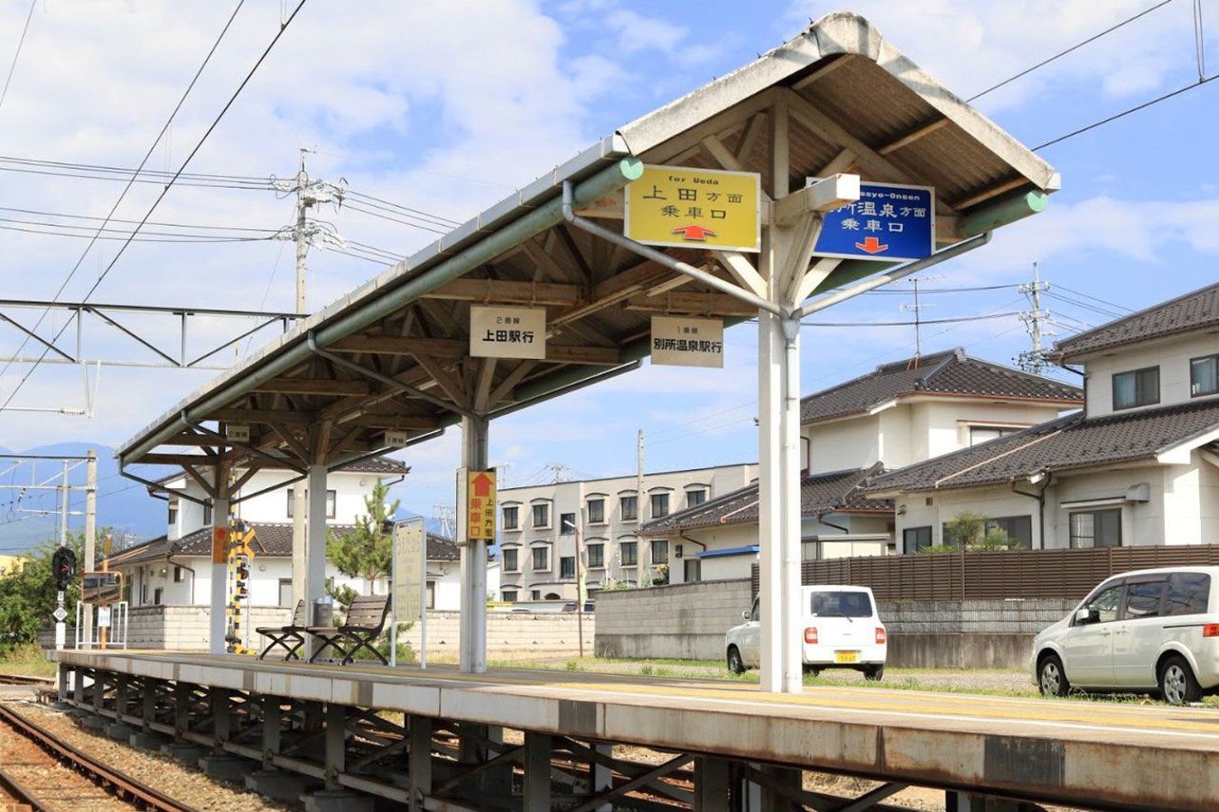 別所線では全線でワンマン運転を実施しているため当駅では通常は進行方向1番前のドアしか開閉しないが、朝6時30分から8時30分の間の上田行きの電車は土日祝日年末年始を除きすべてのドアが開閉します。