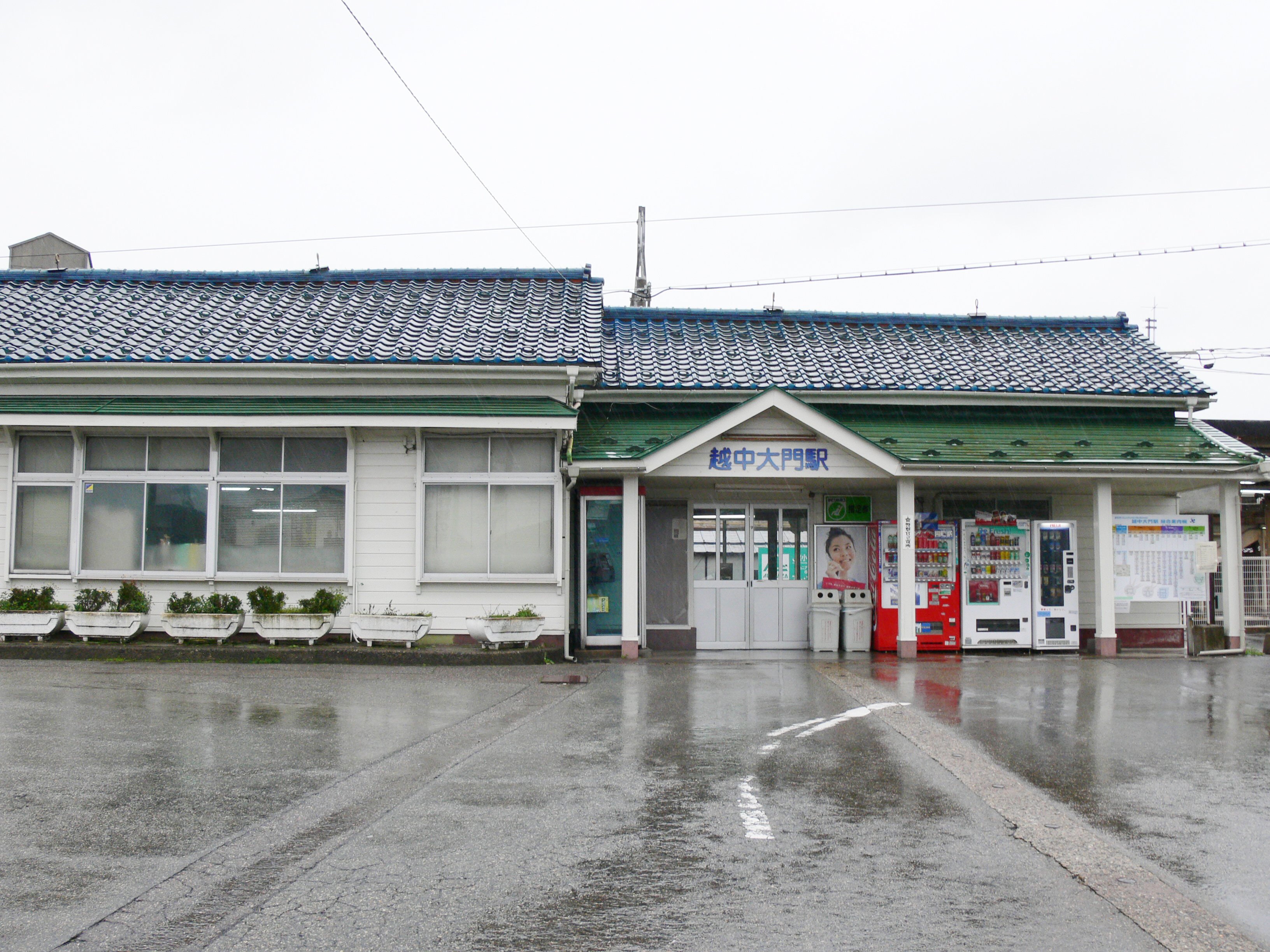 | 越中大門駅(えっちゅうだいもんえき)は、富山県射水市北野にある、あいの風とやま鉄道・日本貨物鉄道(JR貨物)の駅です。2015年3月14日の北陸新幹線開業による経営移管までは、西日本旅客鉄道(JR西日本)北陸本線の駅でした。