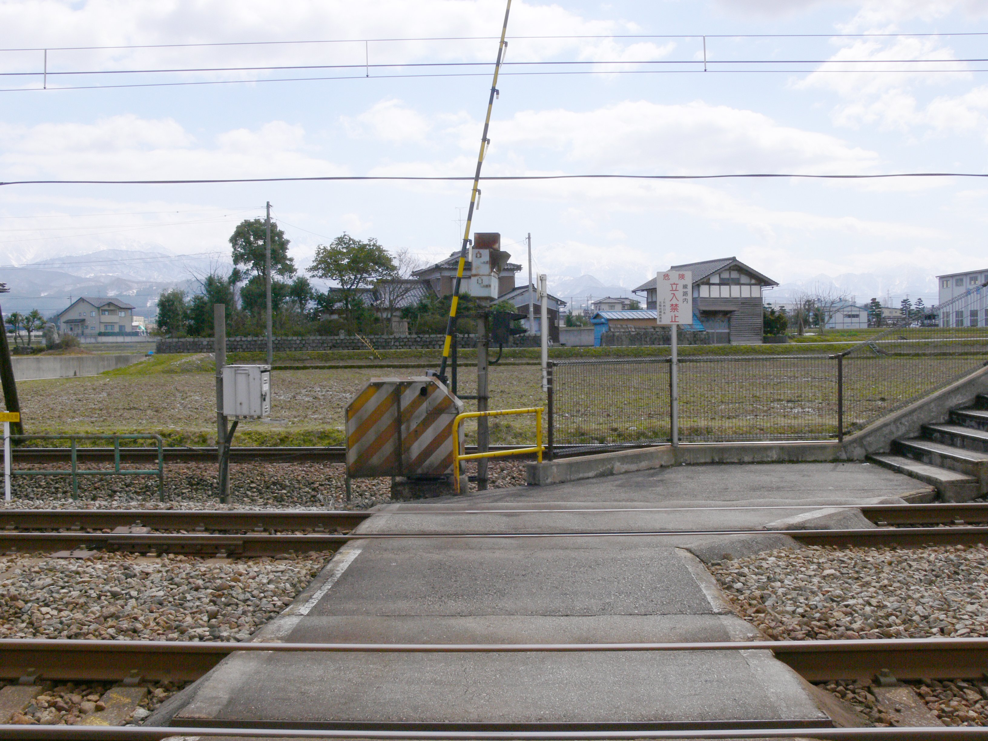 あいの風とやま鉄道線の駅では、当駅のみ跨線橋が設置されておらず、上りホーム(2番線)へ行くには構内踏切を利用します。
