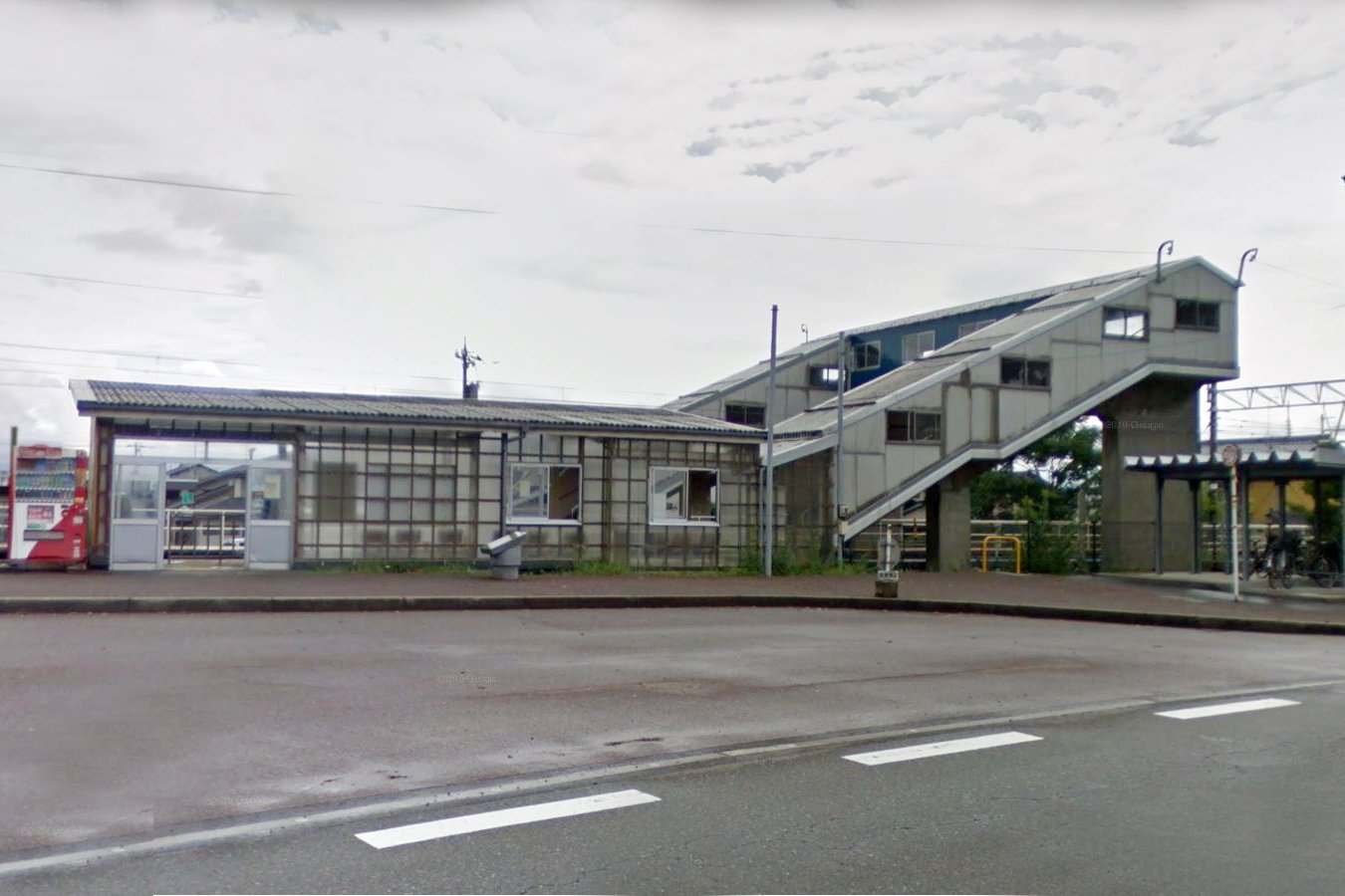 上りホーム側にコンクリート平屋建ての小さな駅舎が設置されていますが、下りホーム側にも出入口が設置されています。