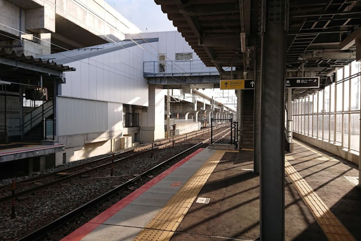 6両編成に対応した長さ130 mを有する相対式ホーム2面2線のホームを有する地上駅となっています。無人駅です。各ホームにはバリアフリー対策としてエレベーターが設置されています。