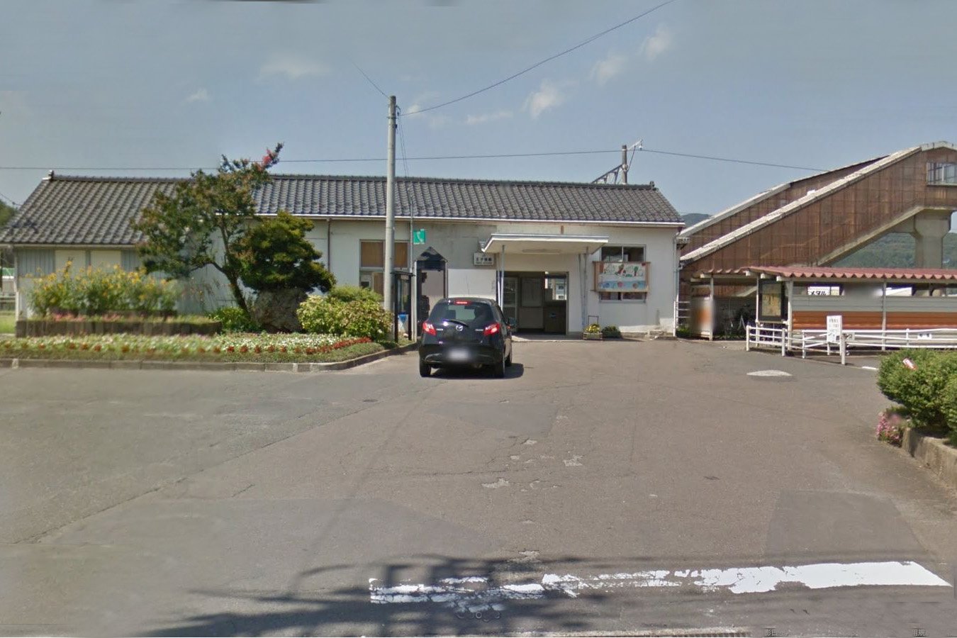 駅舎は木造モルタル造りで上りホーム側にあり、ホーム間は跨線橋で連絡している。