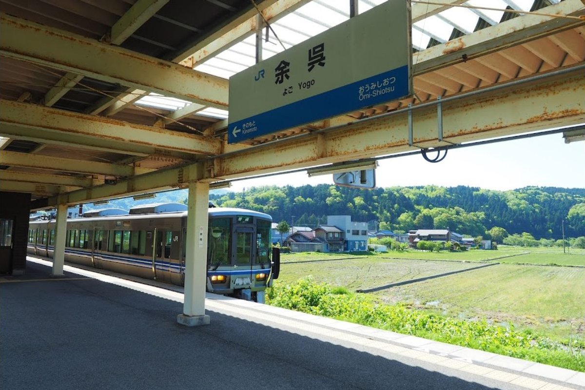 余呉駅(よごえき)は、滋賀県長浜市余呉町下余呉にある、西日本旅客鉄道(JR西日本)北陸本線の駅である。駅番号はJR-A04。 島式ホーム1面2線を持つ地上駅。改札と島式ホームの間には跨線橋や地下道ではなく、構内踏切とスロープを利用する。そのため段差がなく楽に行き来できるようになっている。かつては下り本線と上り待避線、上り本線の3線構造で、上り本線はホームのない通過線の構造であった。国鉄民営化後に上り一番(待避)線を使用停止としホームを上り本線までせり出したため、ホームはかなり幅広である。上りホームは8両分かさ上げされているが、下りホームは4両分のみのかさ上げである。