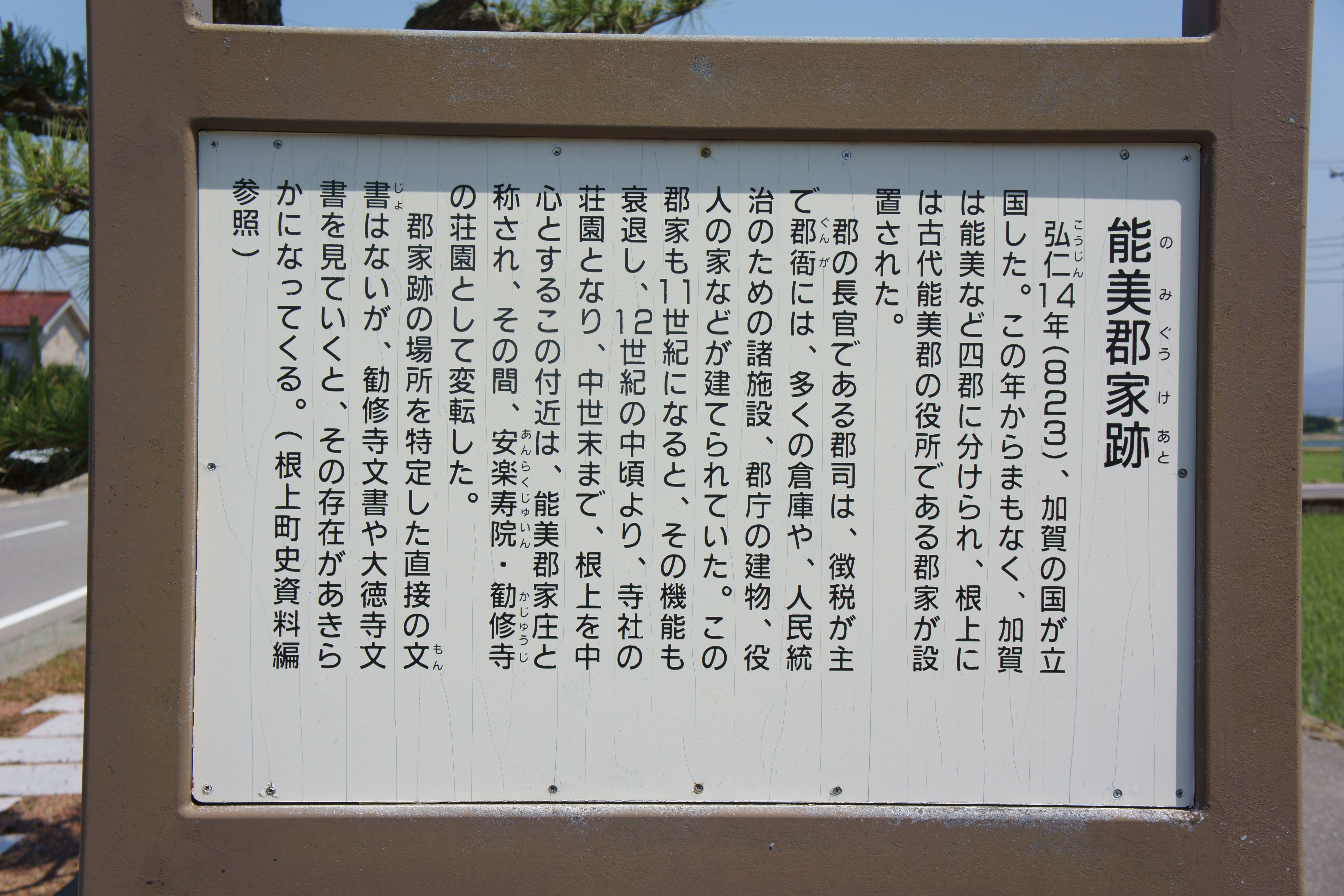能美郡家跡の説明板 |