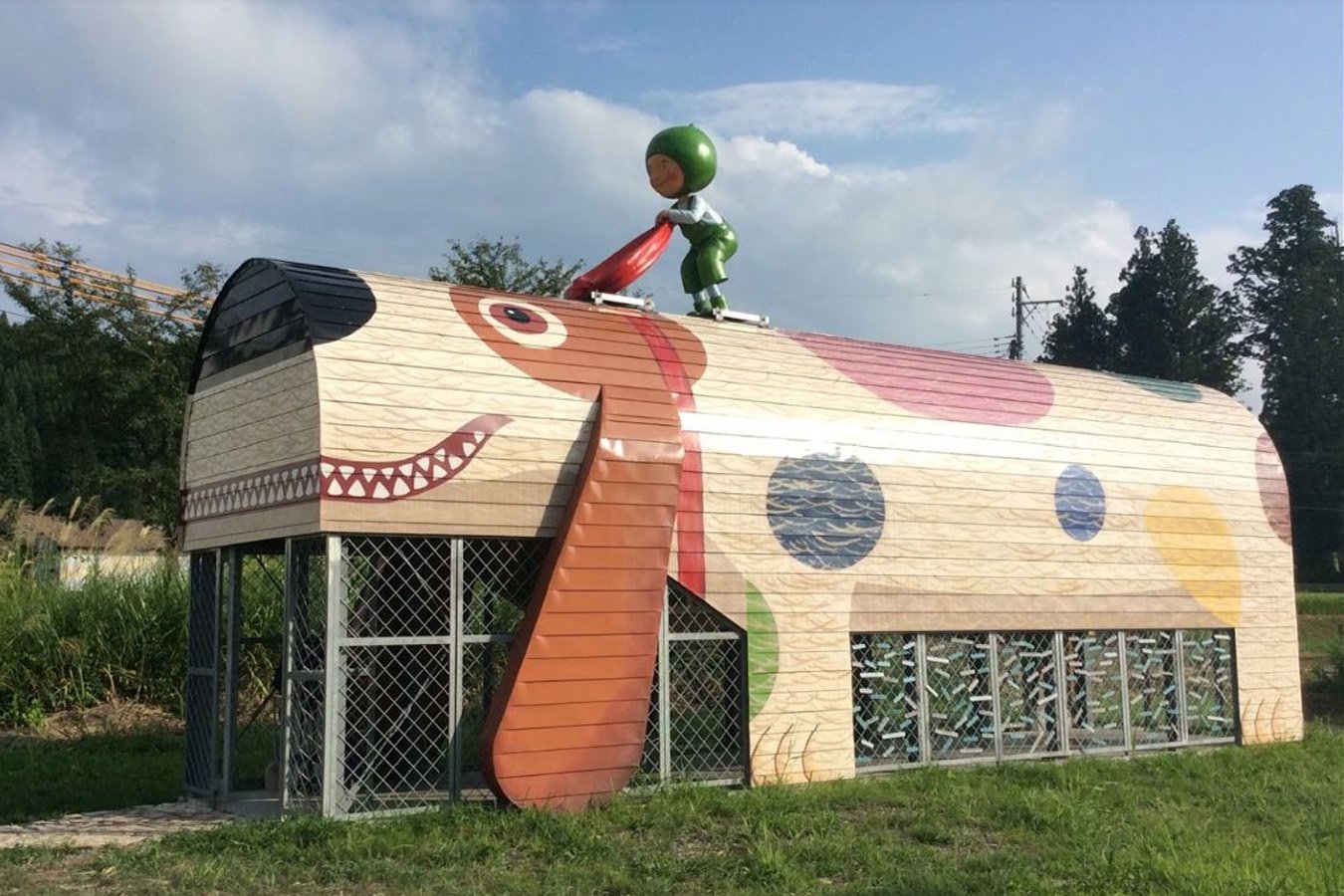 ふたつの作品は、豪雪地帯である越後妻有地域で見られる通称「かまぼこ型倉庫」に着想を得てデザインされた。倉庫内で はインスタレーションや絵、動画
