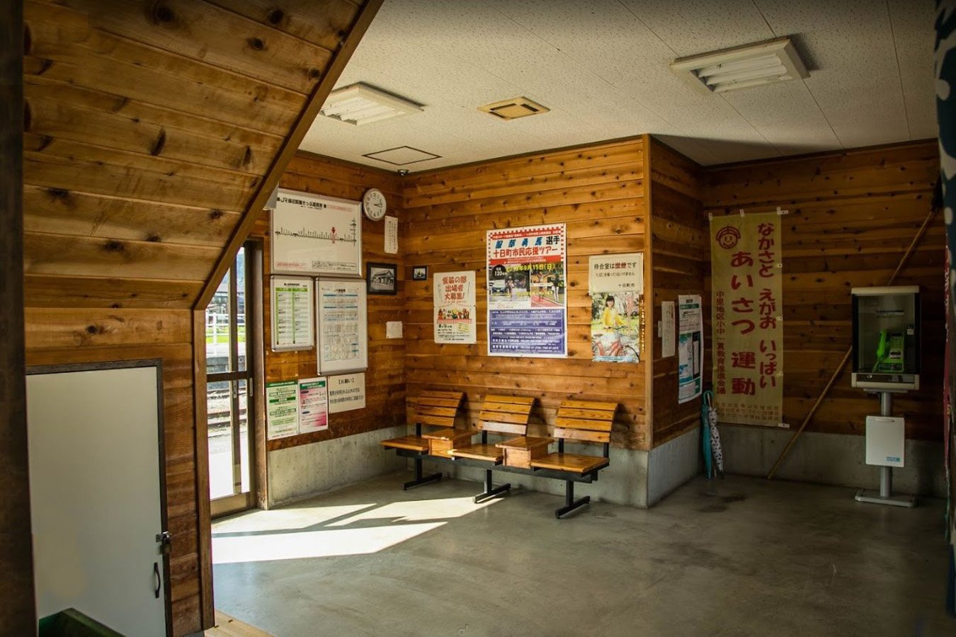 待合所の中には公衆電話まであります |