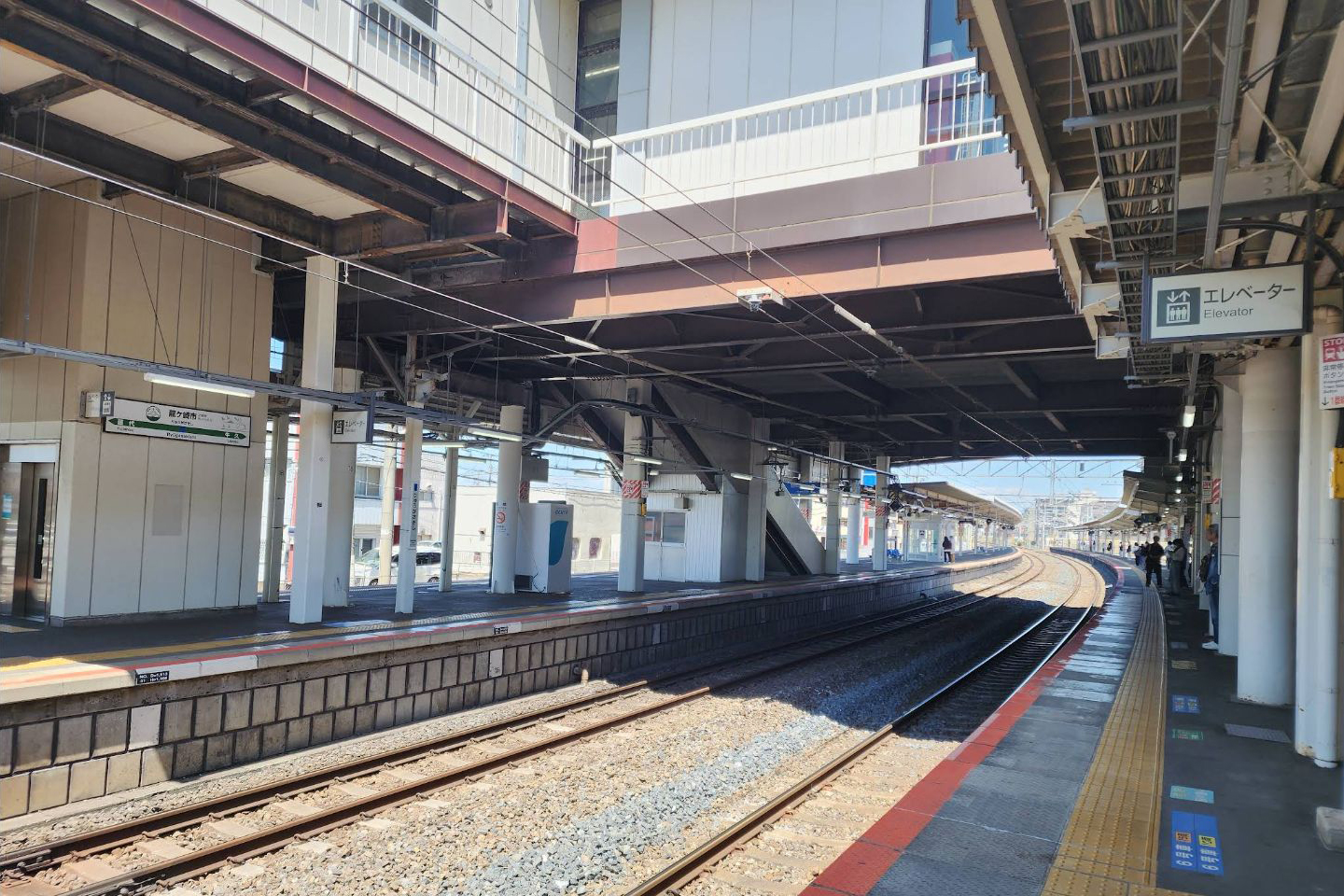 下り本線(3番線)はカーブがきつく、列車とホームの間に大きな隙間が生じるため、中線(2番線)を使用する列車が多い。中線進入時は本線と比べてより手前から徐行する必要があり、連続停車区間とは言え全体の所要時間を短縮する必要がある特急列車や特別快速列車(終点土浦駅まで各駅停車)は本線(3番線)に停車する。