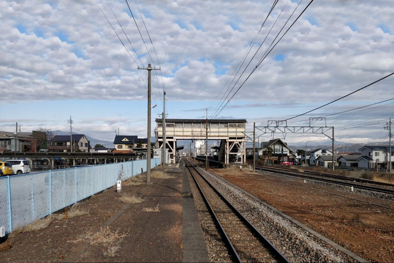 2番線にあたる島式ホームの駅舎側の線路は高崎方のポイントが撤去されており、欠番となっています。そのほか、3番線の東側などに複数の側線が敷かれています。互いのホームは跨線橋で連絡しています。