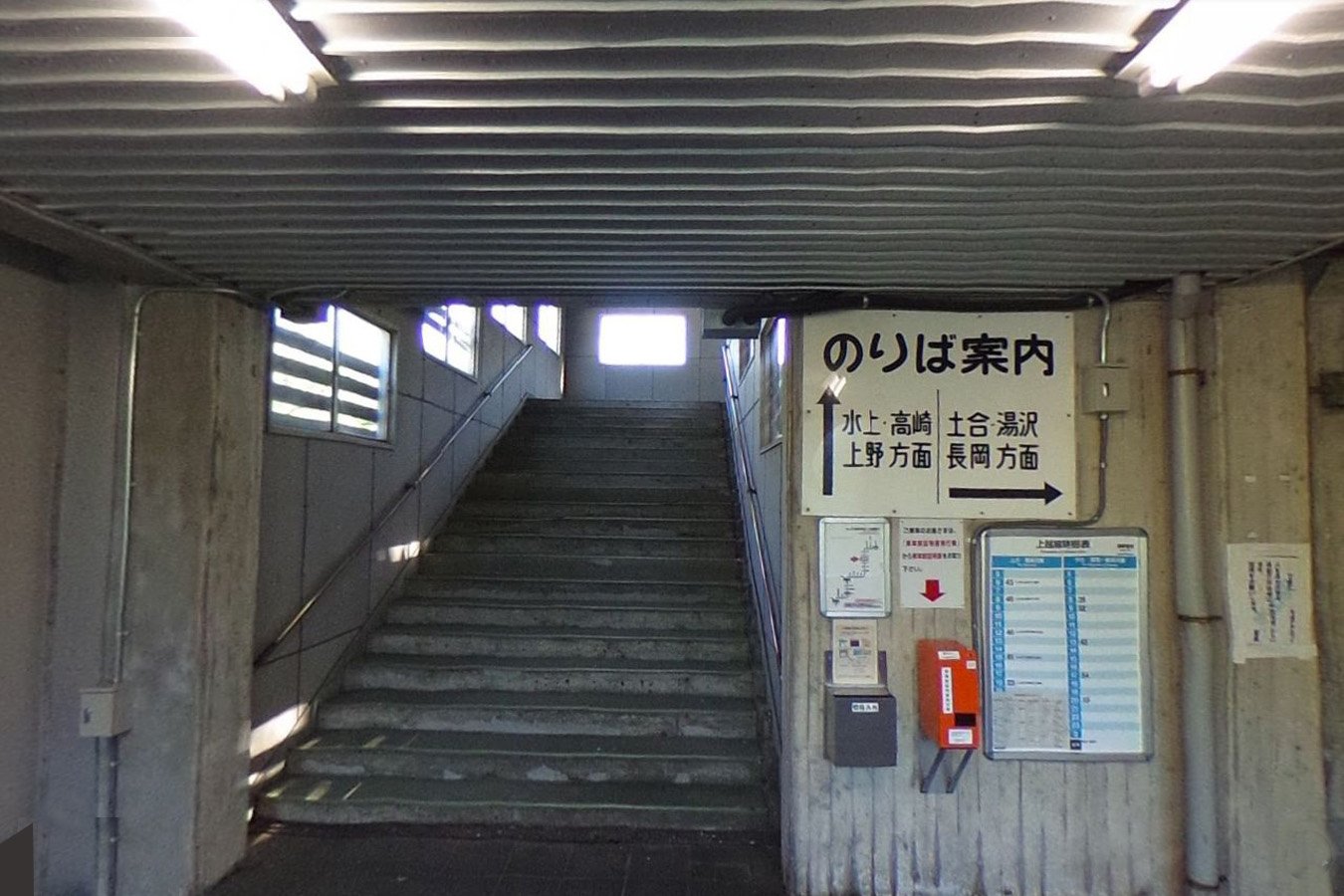 駅舎とは上り線の築堤をくぐる地下通路で連絡しており階段はないので、土合駅のようなことはありません。