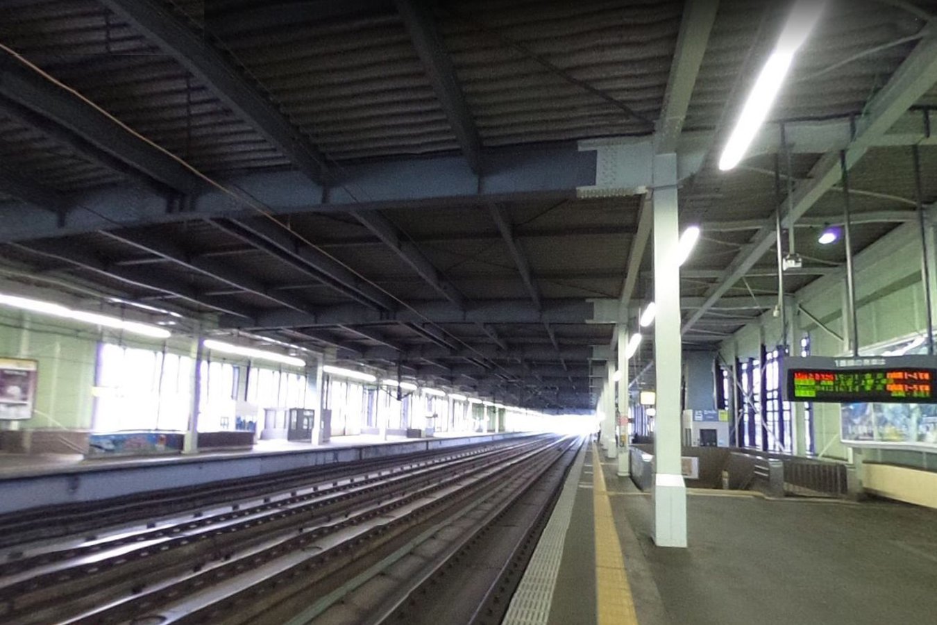 当駅は、相対式ホーム2面2線を有する高架駅で、副本線のみにホームがあります。駅舎は高架下にあります。