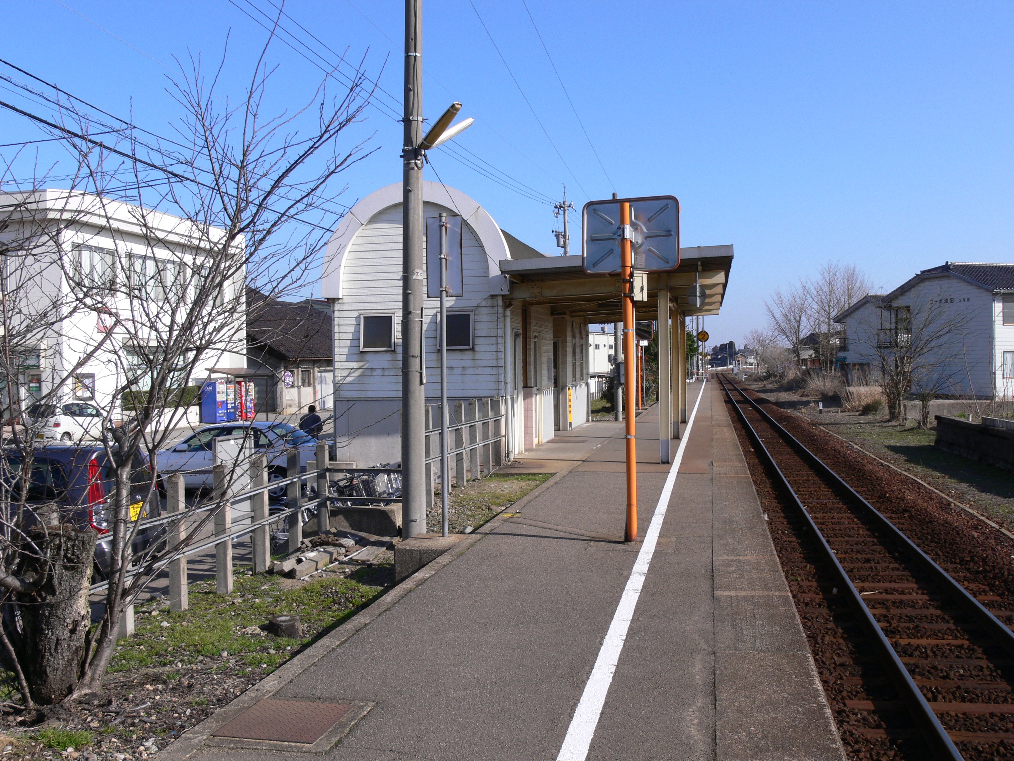 構内には対向ホームの跡が残存している。北陸広域鉄道部管理の無人駅である。