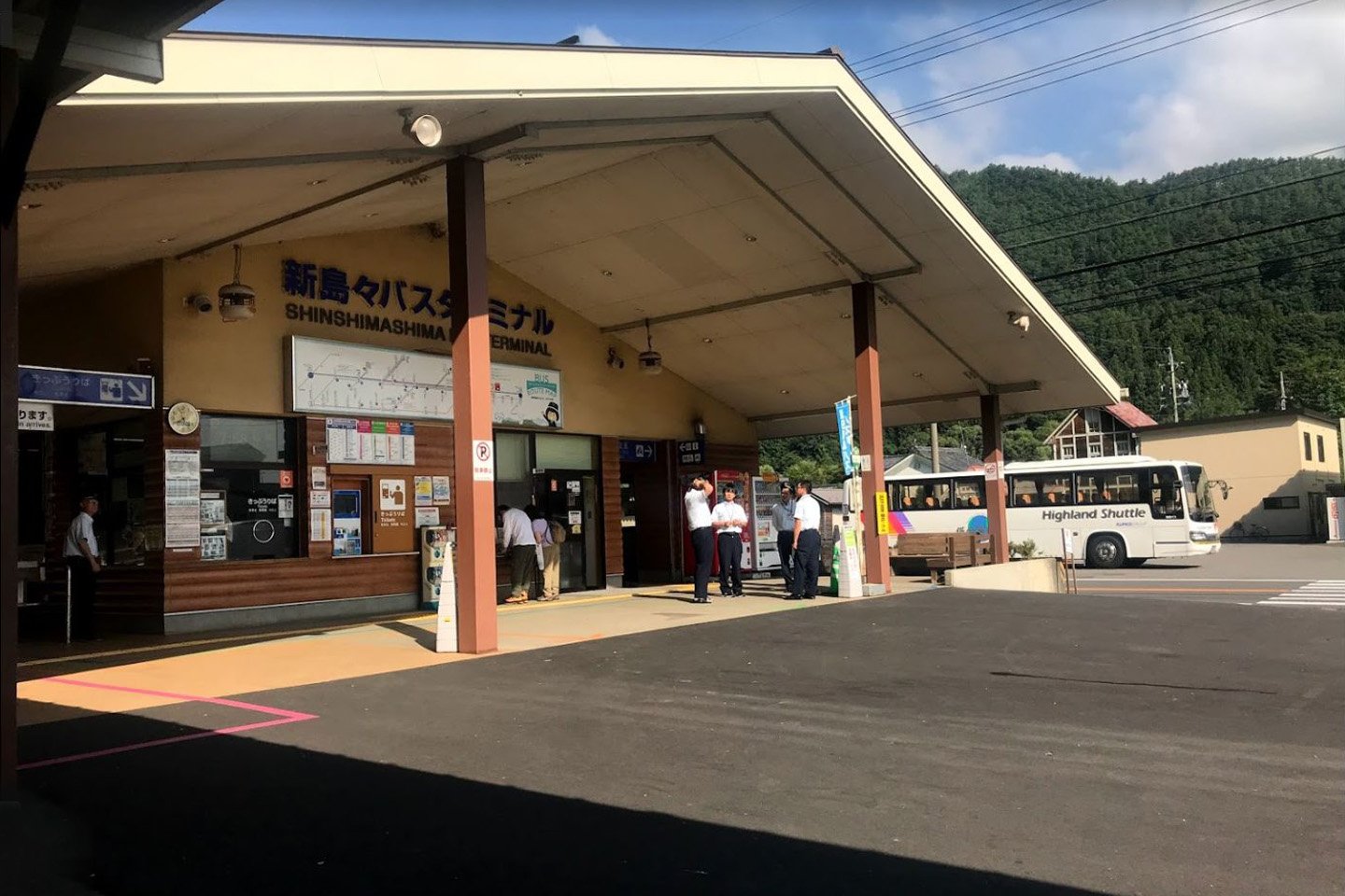 駅前に上高地方面へのバスの発着拠点である新島々バスターミナルを併設しています。