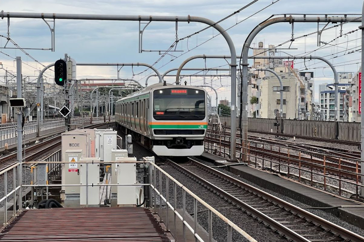 - JU 宇都宮線・高崎線:宇都宮線は東京駅 - 尾久駅 - 大宮駅を経て小山駅・宇都宮駅・黒磯駅方面を結ぶ東北本線の中距離電車。高崎線は大宮駅から分岐して熊谷駅・高崎駅方面を結ぶ中距離電車。上野駅発着系統と、上野駅・東京駅経由で東海道線に直通する上野東京ライン系統がある - 駅番号はJU 04。