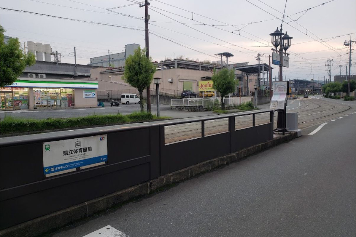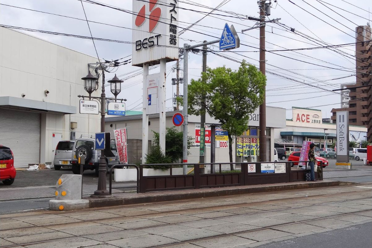 熊本県立総合体育館は当電停より東へ200m程の距離にある。
