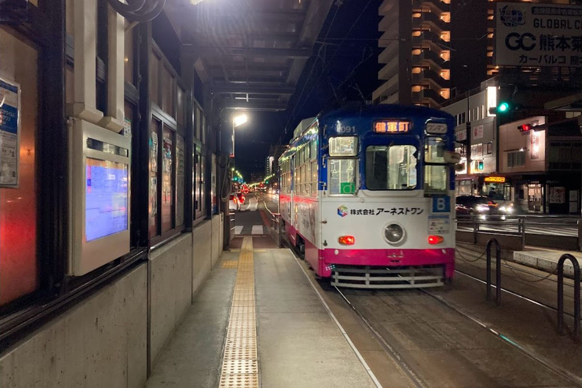 のりば 路線 方向 行先 西側 ■A系統 上り 通町筋・辛島町・熊本駅・田崎橋方面 ■B系統 通町筋・辛島町・本妙寺入口・上熊本方面 東側 ■A系統 ・■B系統 下り 水前寺公園・動植物園入口・健軍町方面