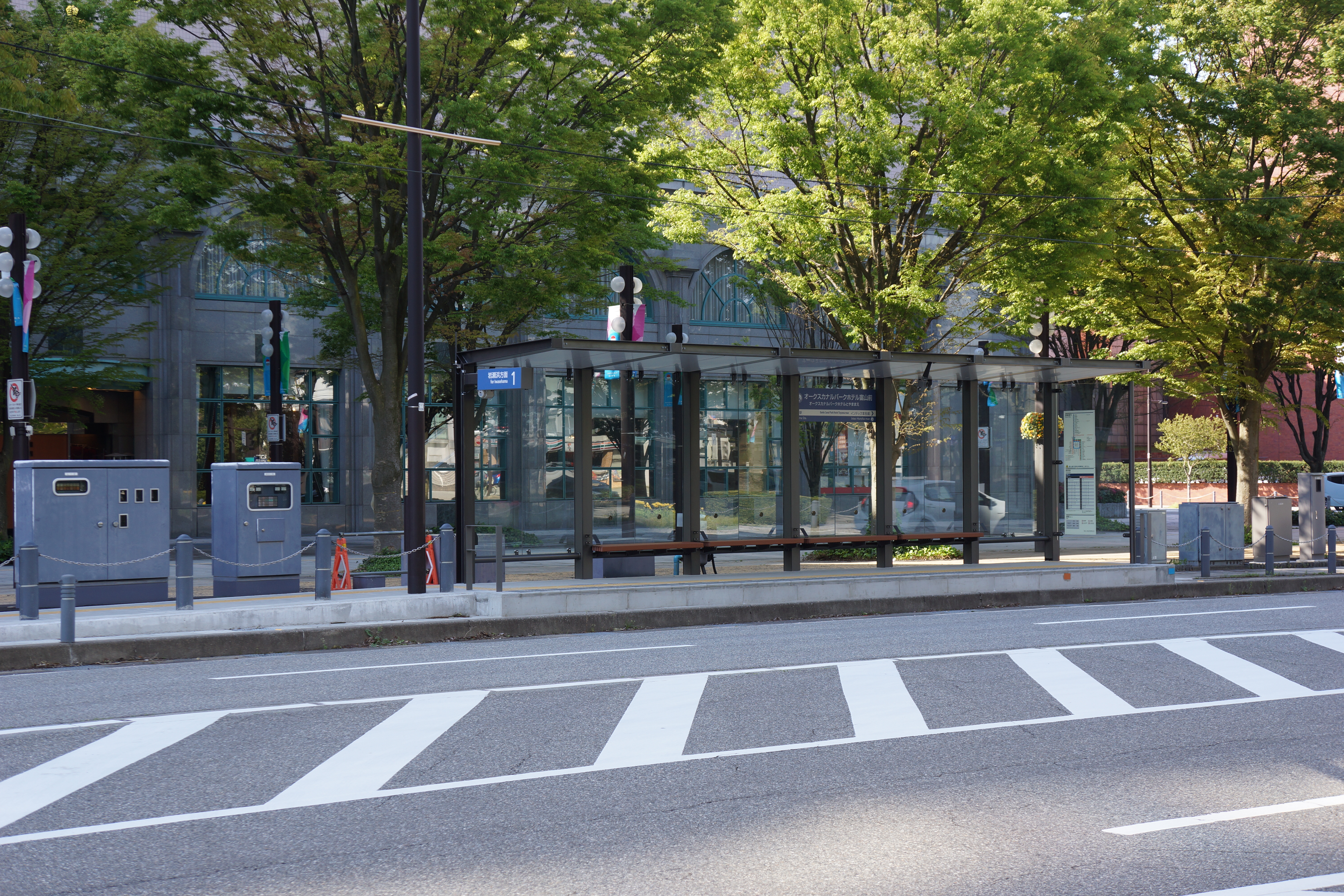 オークスカナルパークホテル富山前停留場(オークスカナルパークホテルとやままえていりゅうじょう)は、富山県富山市牛島町にある、富山地方鉄道富山港線の停留場です。駅番号はC26。