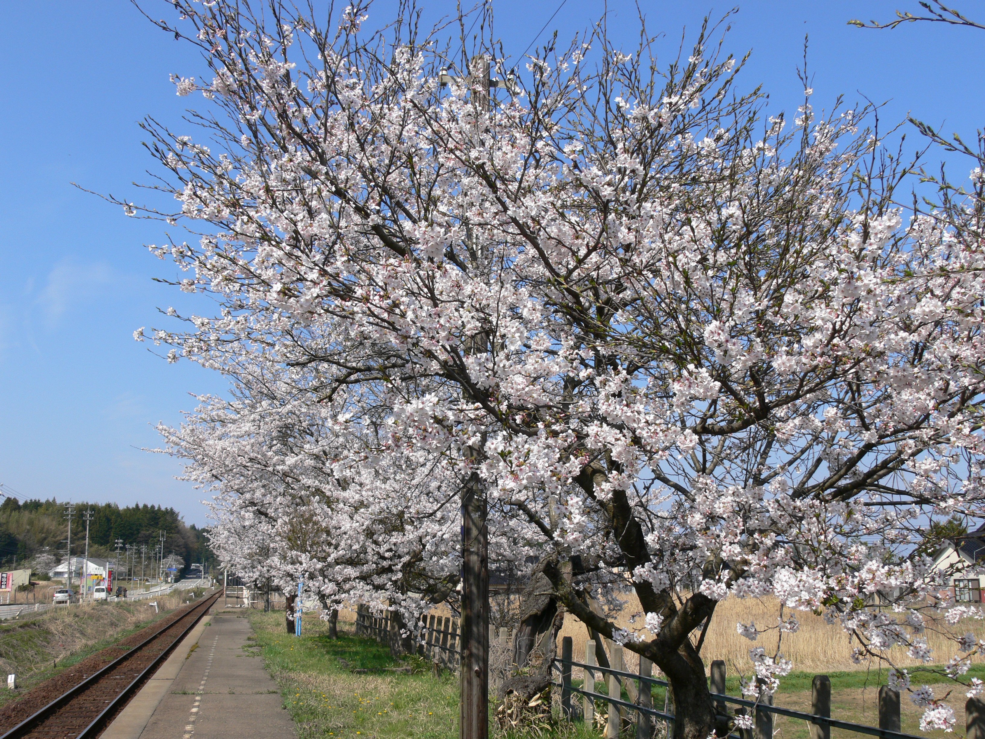 | 笠師保駅ホームに咲く桜 |