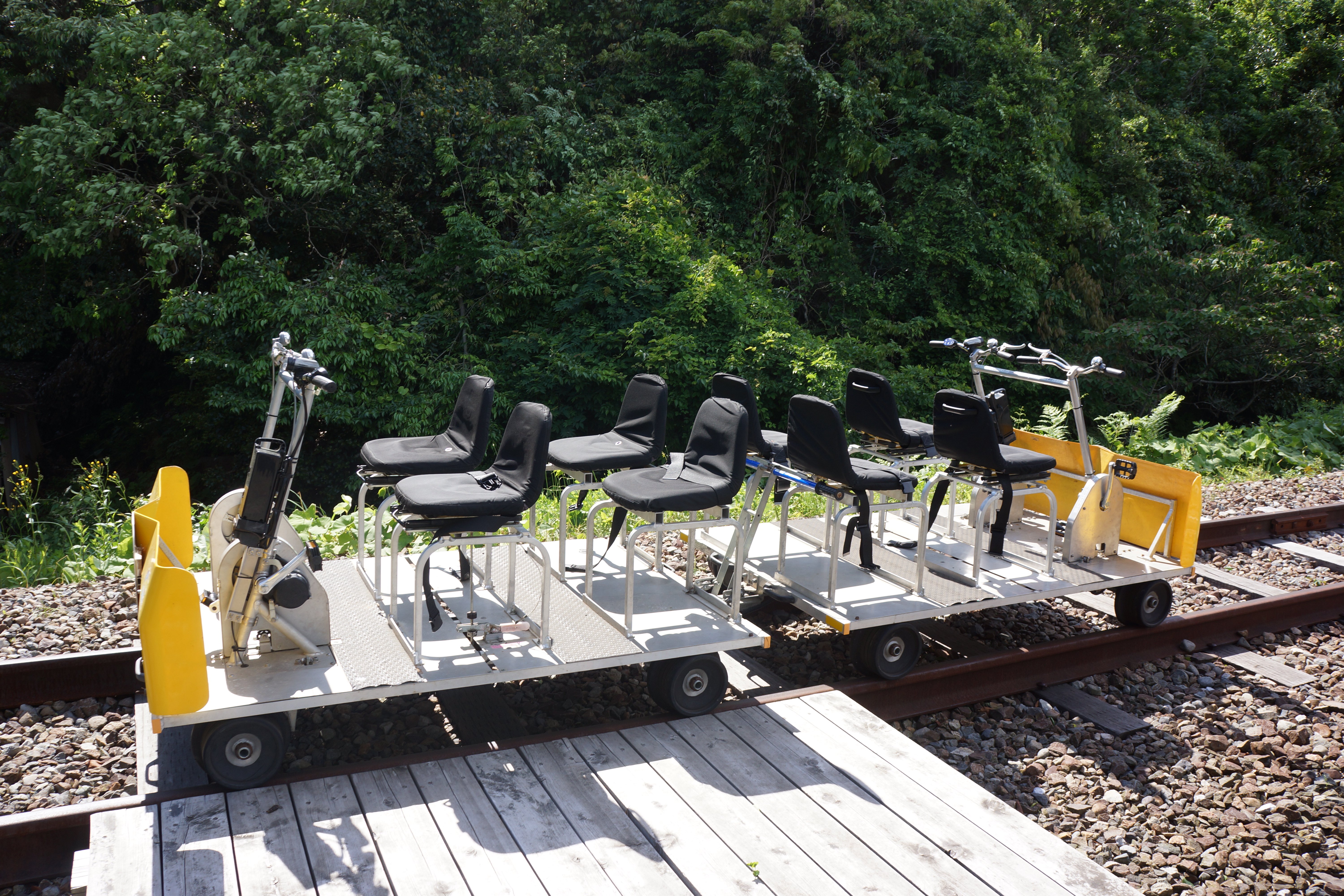 恋路駅ホームに到着すると、軌道自転車が停車していて、ここから乗り込みます。