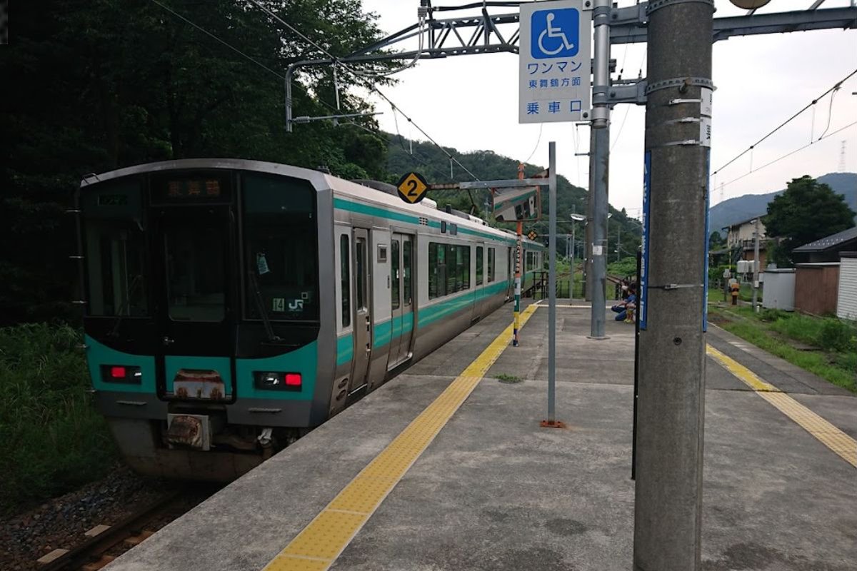 | 粟野駅に停車する125系電車 |
