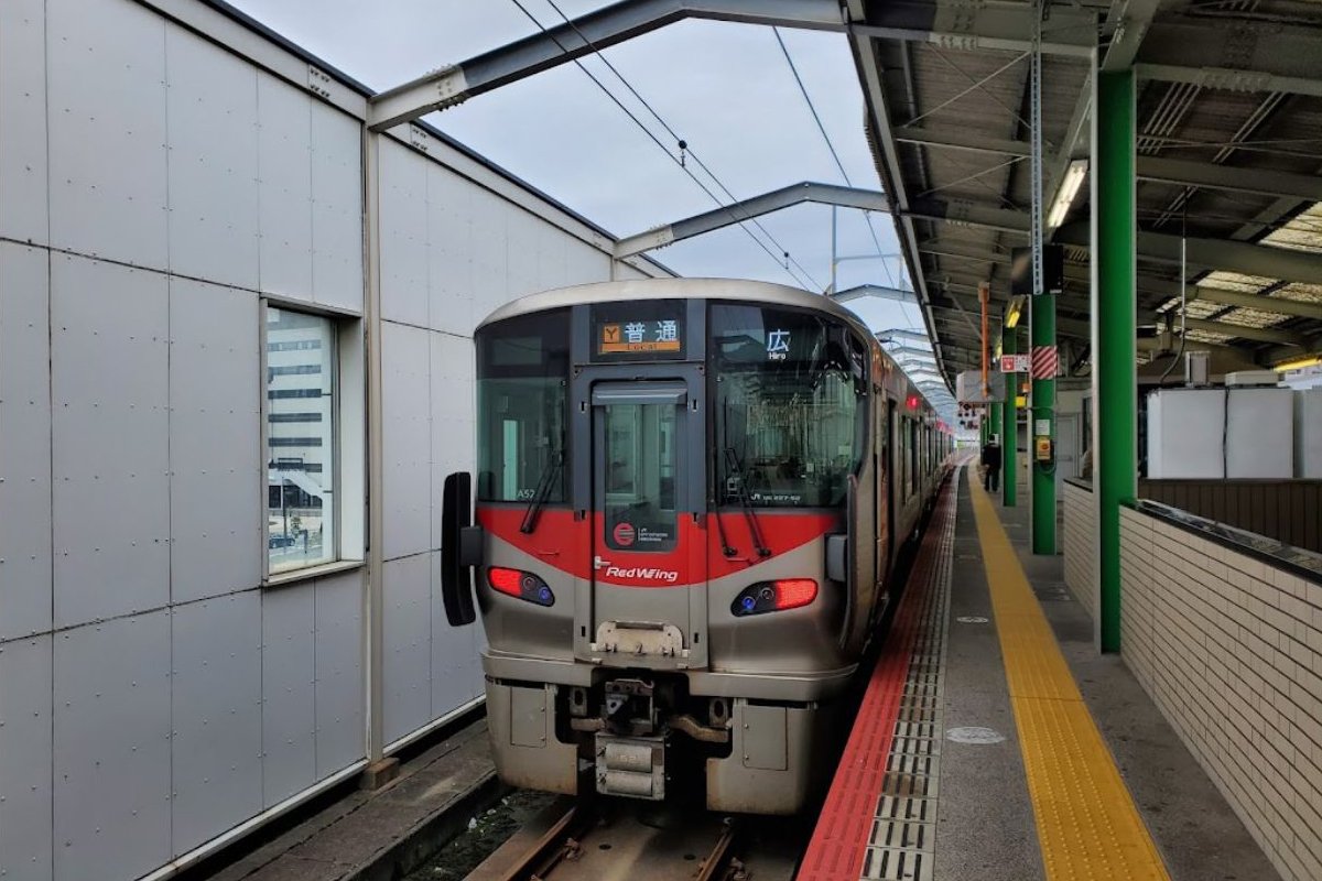 - 山陽本線下り本線は2番のりば、上り本線は4番のりばであり、上り岡山方面に運転される列車と当駅通過列車(貨物列車等)はこの2線を通る。3番のりばは岡山方面からの折り返し列車専用である(呉線からの直通列車が使用することもある。また2019年3月16日ダイヤ改正より、1日2本広島方面から直通する糸崎行きも使用開始)。
