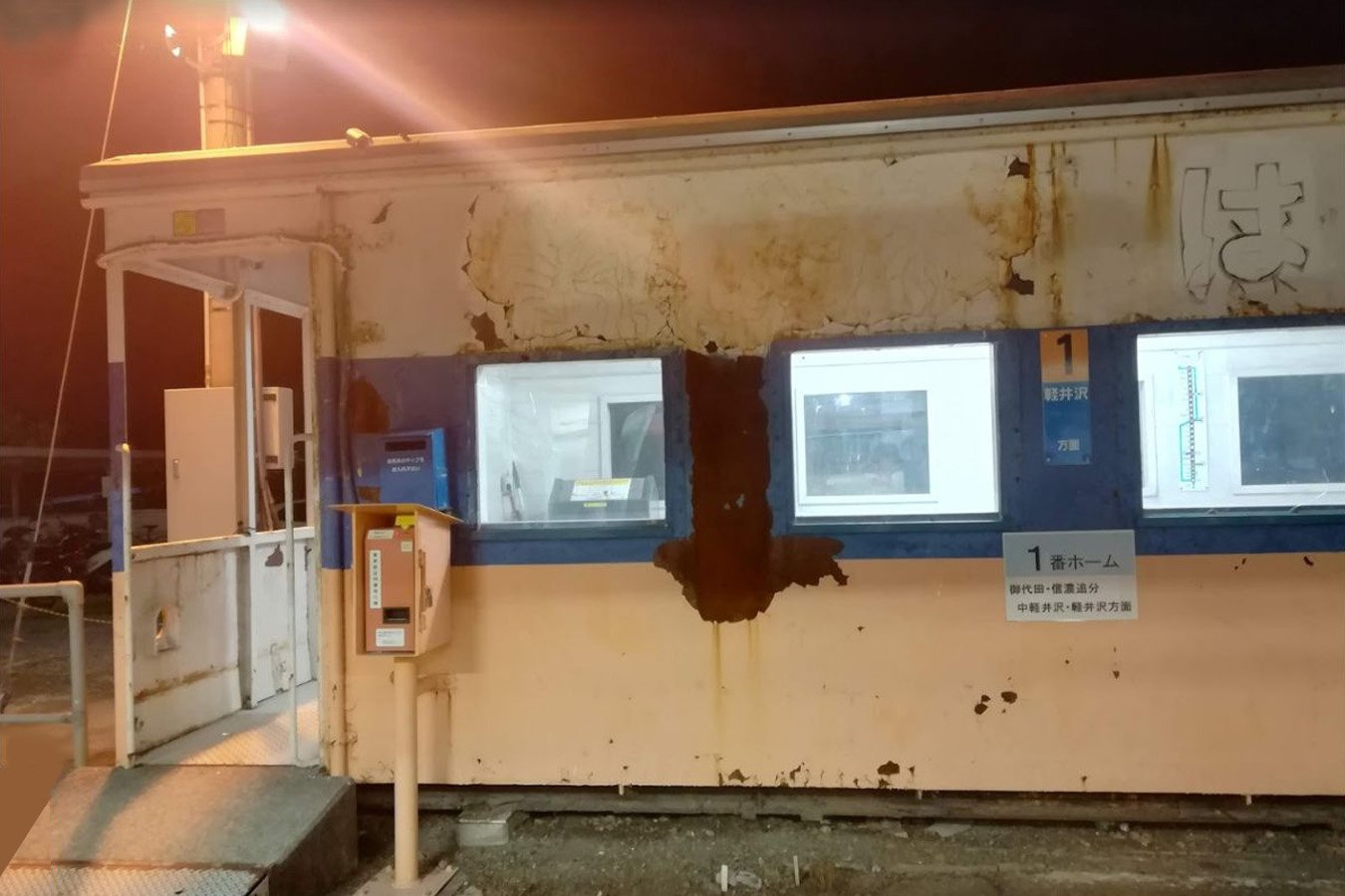 国鉄末期に駅舎を解体し、貨車(緩急車)改造の待合室を設置しています。
