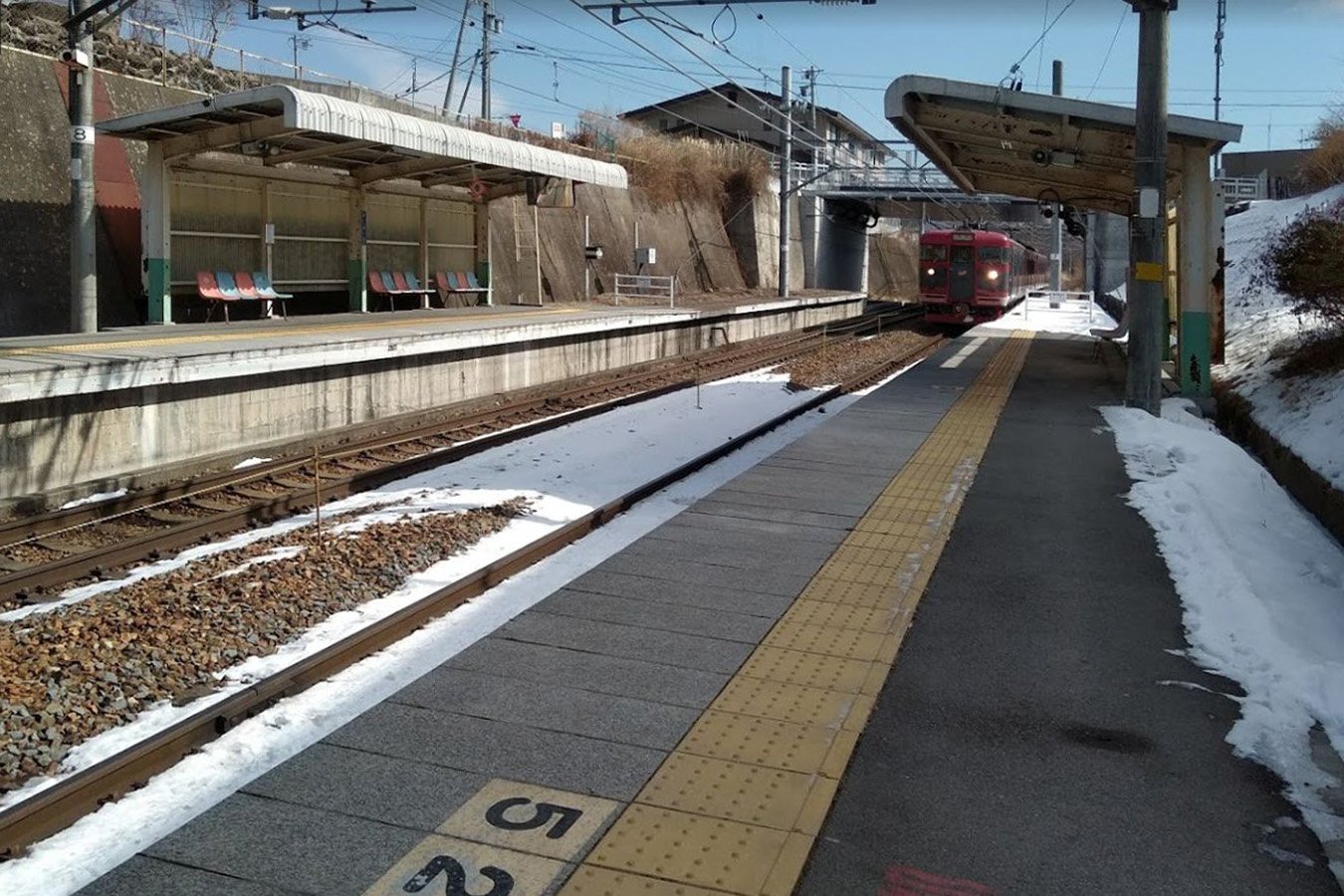 旧国鉄時代には単線でスイッチバック駅でしたが、信越本線の複線電化により現在の場所にホームと駅舎が移動し、スイッチバックは廃止されています。