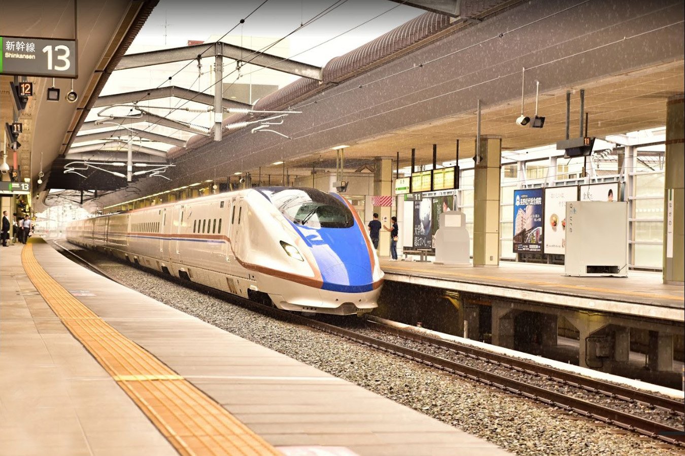 新幹線ホームは定期「かがやき」は12番線(下り)・13番線(上り)発着となっています。