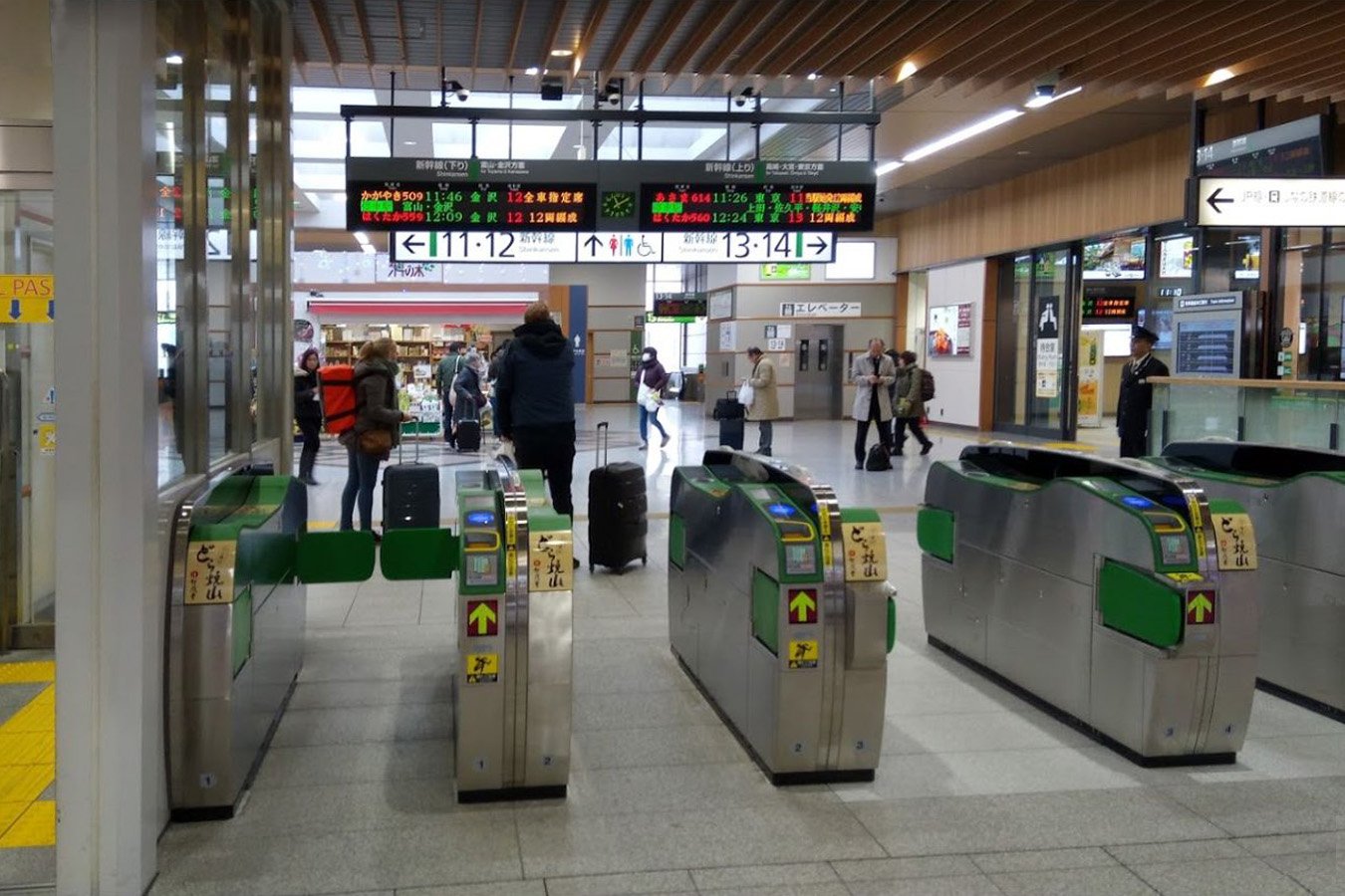 改札口は在来線改札、新幹線改札、新幹線・在来線乗り換え改札、ミドリ口改札の合計4か所があり、すべて自動改札です。2008年3月15日のダイヤ改正において新幹線で、JR東日本のモバイルSuica特急券のサービスが開始されたことにあわせ、新幹線改札や新幹線・在来線乗り換え改札において、モバイルSuicaが利用できるようになりました。また、2016年3月26日のダイヤ改正でSuica FREX/FREXパルの利用ができるようになりました。なお、ミドリ口改札は在来線側のみにあり、係員もいないため、新幹線を利用する場合や、自動改札を利用できない切符は利用できません。在来線改札と新幹線改札、みどりの窓口(営業時間、5:30 - 23:00)、びゅうプラザなどは、善光寺口と東口を結ぶ自由通路(橋上)に面しています。