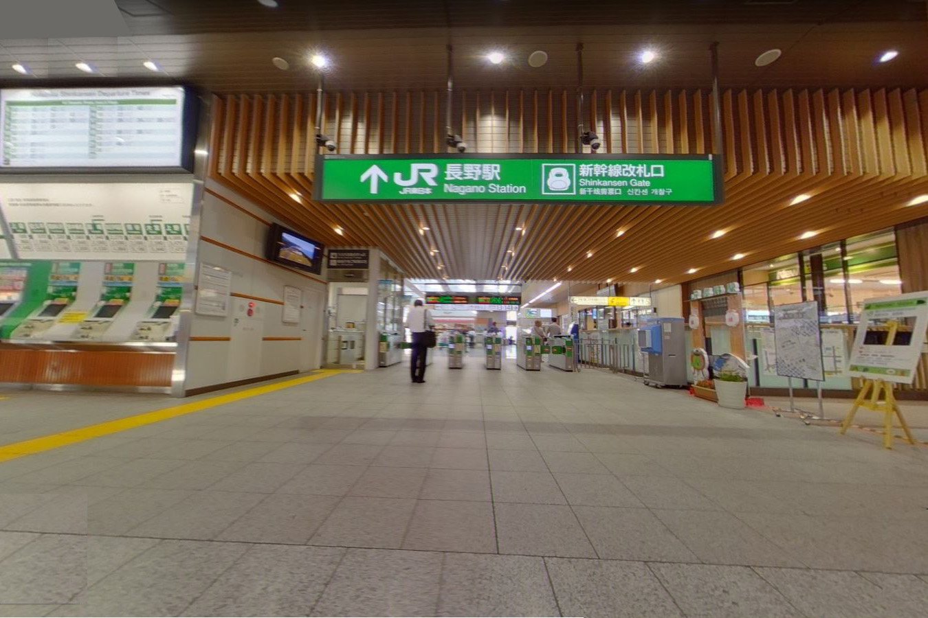 入口は非常に多く、善光寺口の目の前からエスカレーターで連絡するものや、バスターミナル横からエレベーターで降りるもの、東口側から連絡通路を通ってくるものなどがあり、さらにながの東急百貨店や駅ビルMIDORI、長野東急REIホテルとも地下で直結しているため、様々な方向から入ることができます。