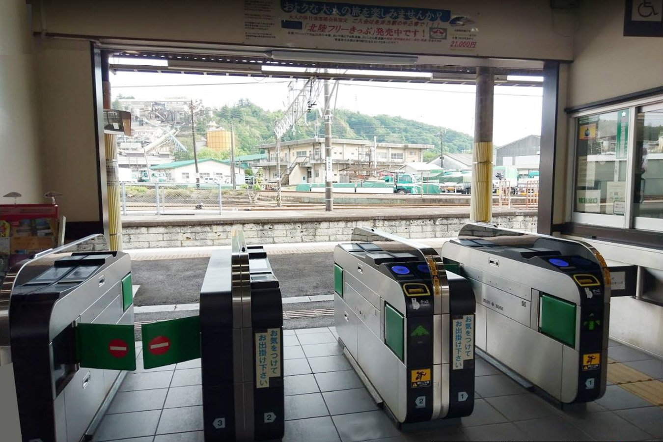 2006年にみどりの窓口が廃止され、その代替として「もしもし券売機Kaeruくん」が設置されたが、2012年に営業終了し撤去されています。指定席券売機・Suica対応自動改札機が設置されています。