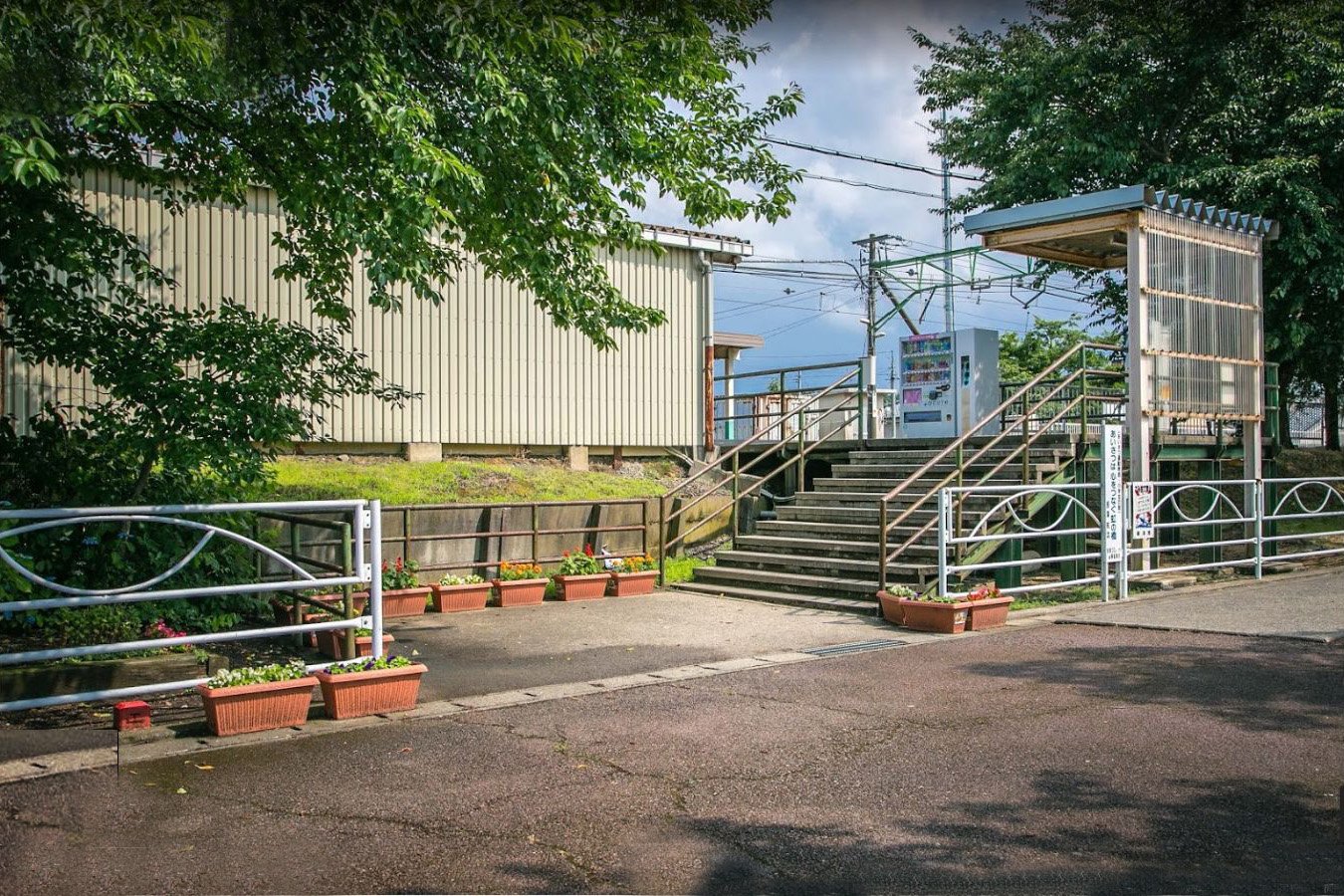 西口には駅舎はなく、ホーム上の待合室内に自動券売機(簡易式1台。Suica、オレンジカード等は使用不可)が設置されています。後に列車運行状況を知らせる電光掲示板が追加されて取り付けられました。