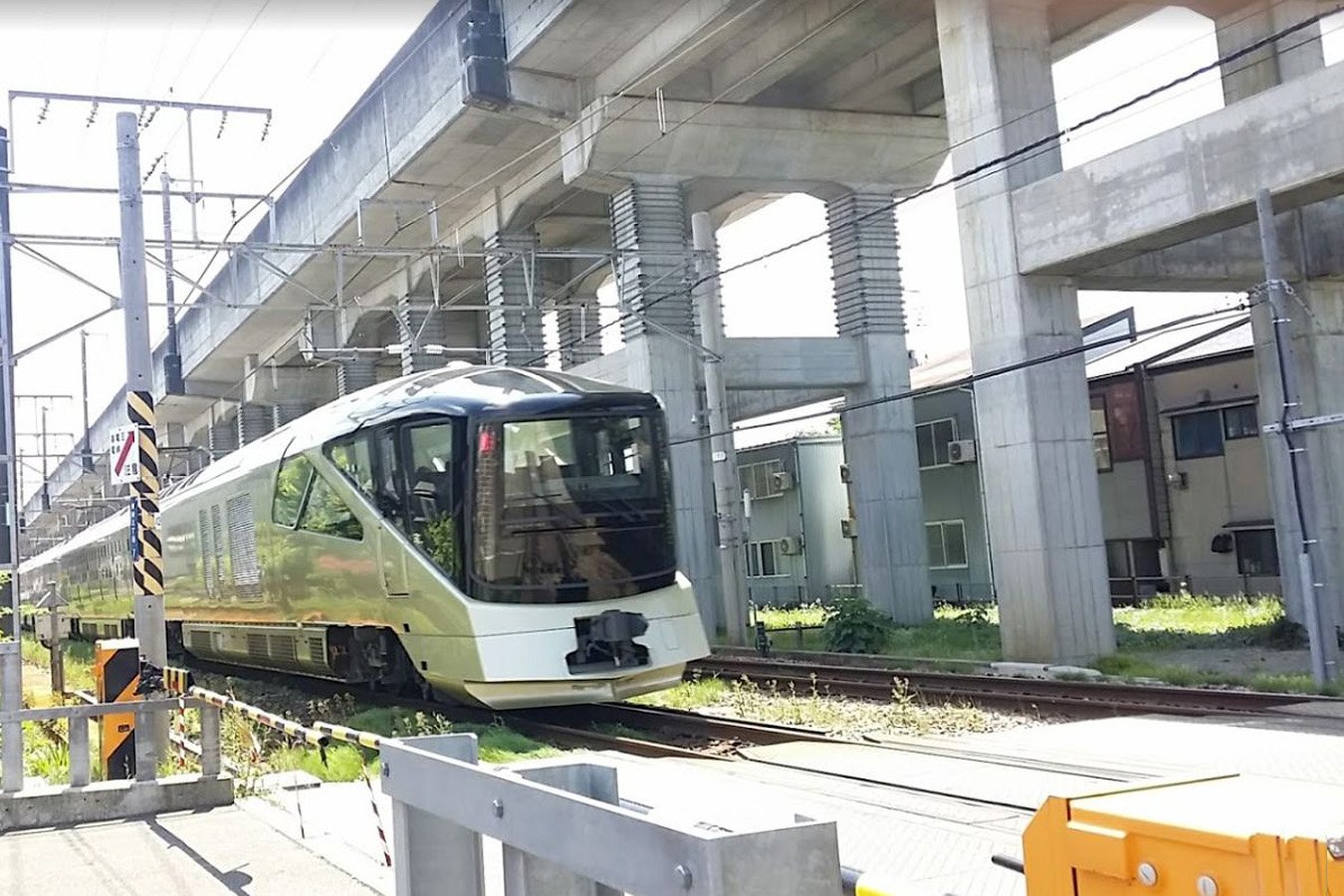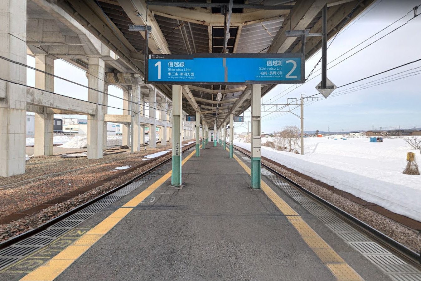 駅舎とホームの間には上越新幹線の高架橋が通り、その下にはかつて貨物専用線の側線がありました。