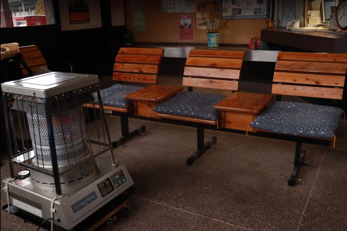 待合室にファンヒーターが |