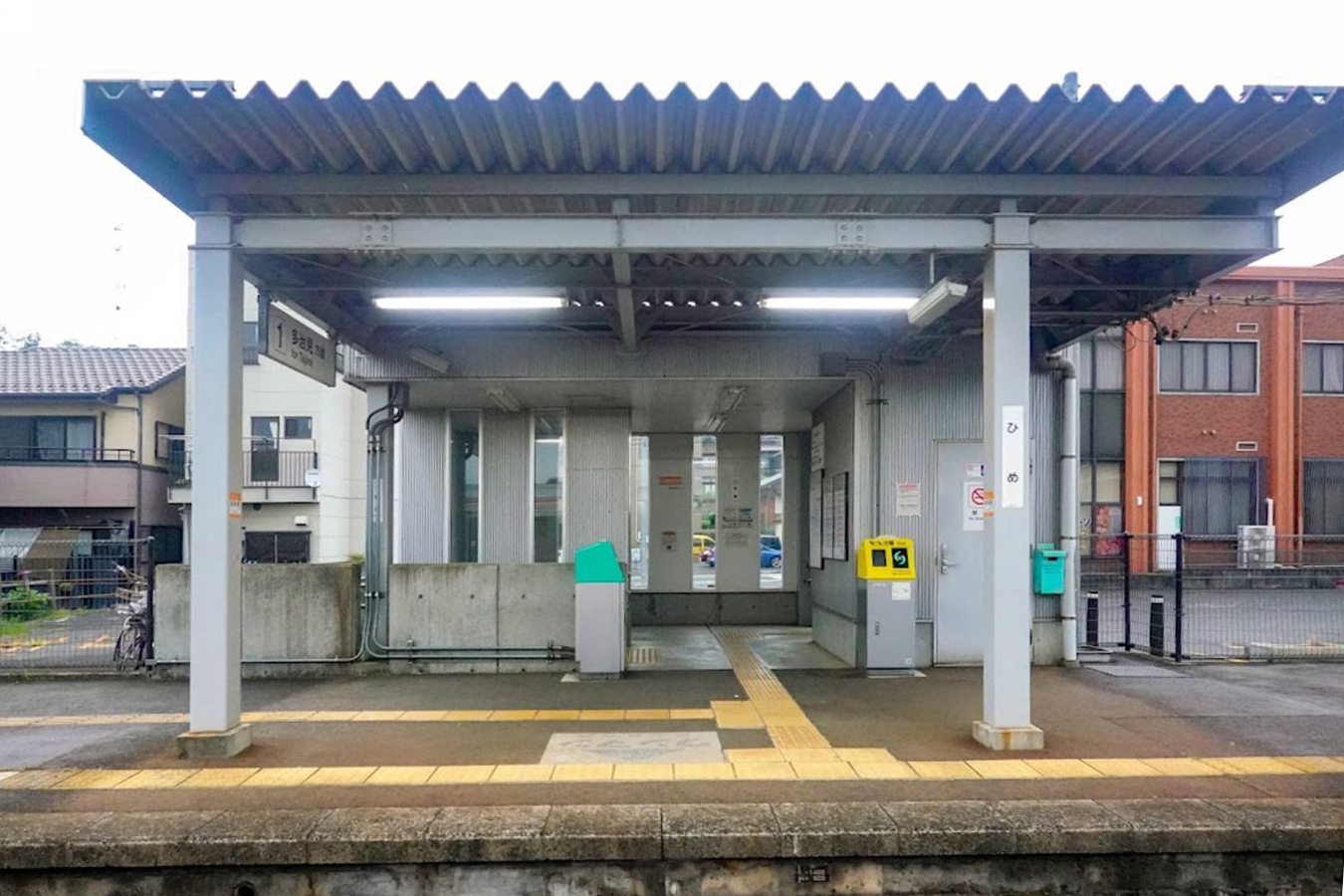 駅舎は扉のない構造でバリアフリーとするためスロープが設置されています。待合所があります。