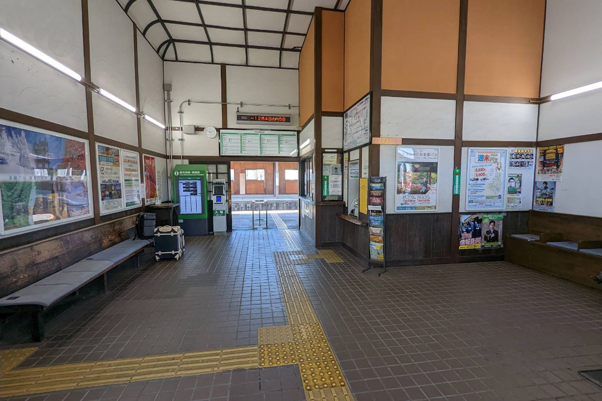 かつて設置されていた出札窓口は待合室内に後から設置されたもので、当初の出札窓口や駅事務室部分は、「駅なかプラザ」という物産店となっている。