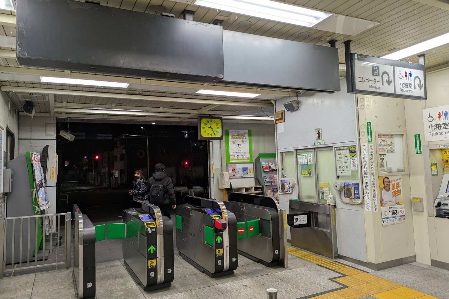 直営駅で、お客さまサポートコールシステムが導入されており、早朝および夜間の一部時間帯はインターホンによる案内となる。