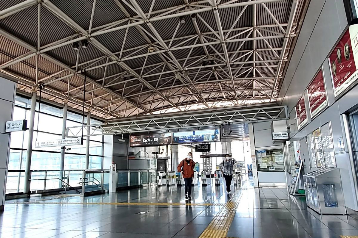 駅の南北を東海道新幹線を跨いでつなぐ橋上駅舎を備える。構内北口の南北自由通路にオートウォーク(動く歩道)がある。