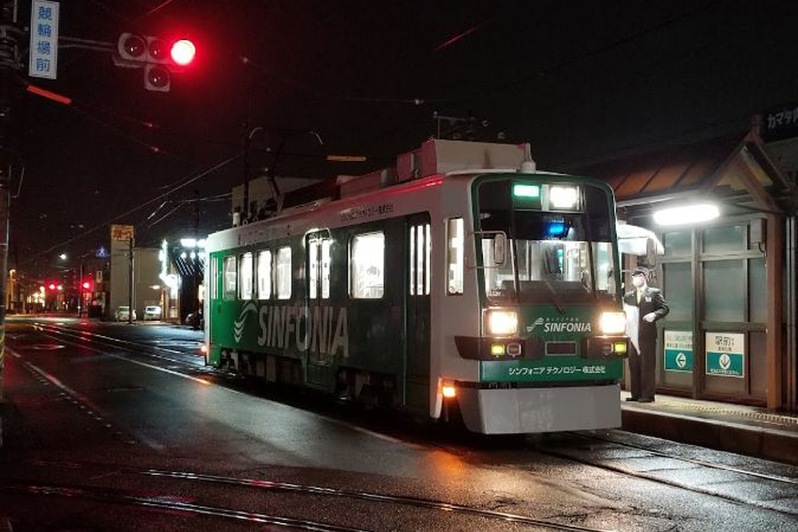 このカーブは、日本の鉄道線路の中で最も急なカーブ(半径11m)となっています。このため、同社が所有する超低床車両のT1000形はこのカーブを曲がることが不可能であり、赤岩口方面限定運用となっています。