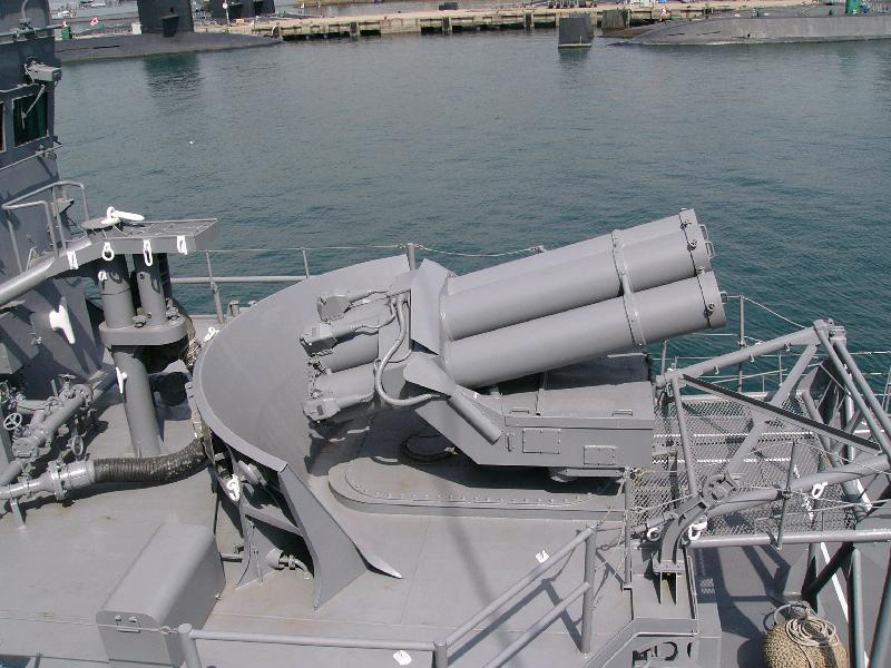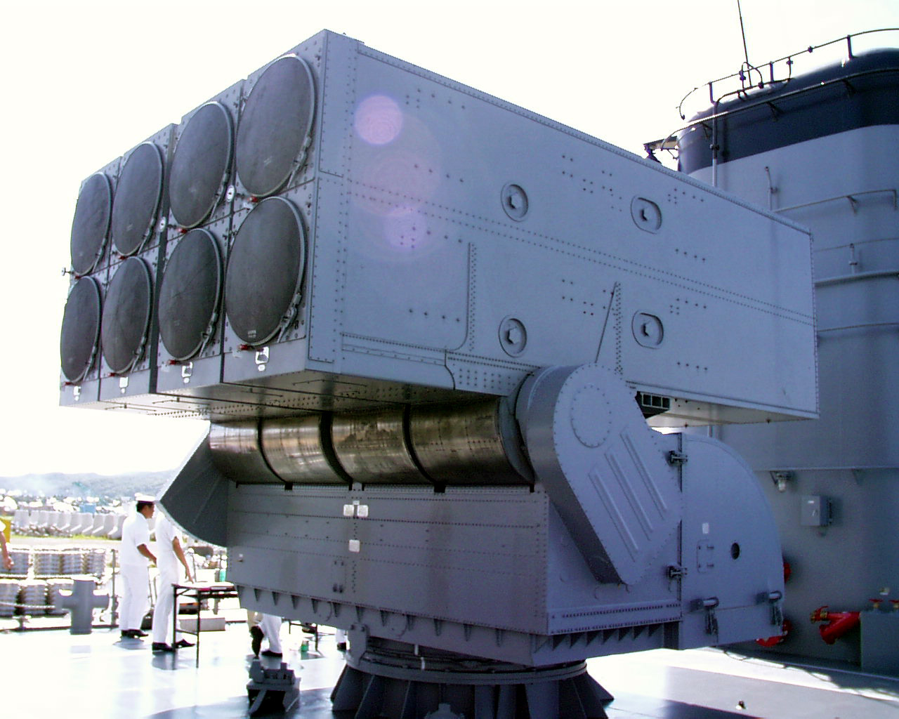 チャフ・ロケット発射機は、レーダーホーミングの対艦ミサイルから艦を防御する兵器です。