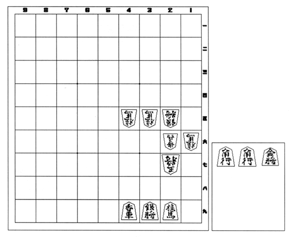 | 第4問 | ▲2三桂不成 △4一玉 ▲4二龍 △同飛 ▲5三桂まで5手詰め |